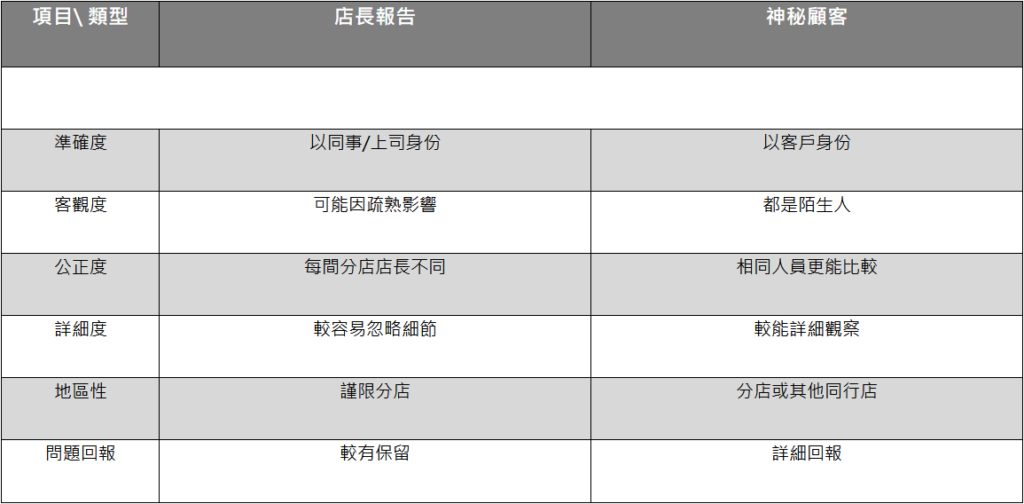 神秘顧客評核表: